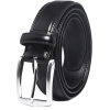 The belt has a plaque buckle with a brushed textured finish and a pin closure, giving it a neat and straightforward look suitable for formal or office wear.